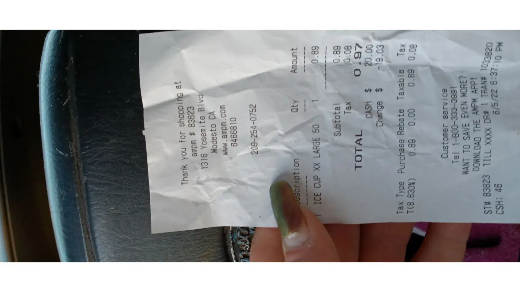 The date is June 5th 2022 I go into ampm I get my container and fill it up with ice my own container that I take in there every ampm charges $0.50 but this one particular one likes to charge two and three dollars for ice when you have your own containers your own cup this ampm at 1316 Yosemite boulevard Modesto California AMPM store number is 838-23 they are ripoffs they are ripping people off and putting the money in their own pockets
