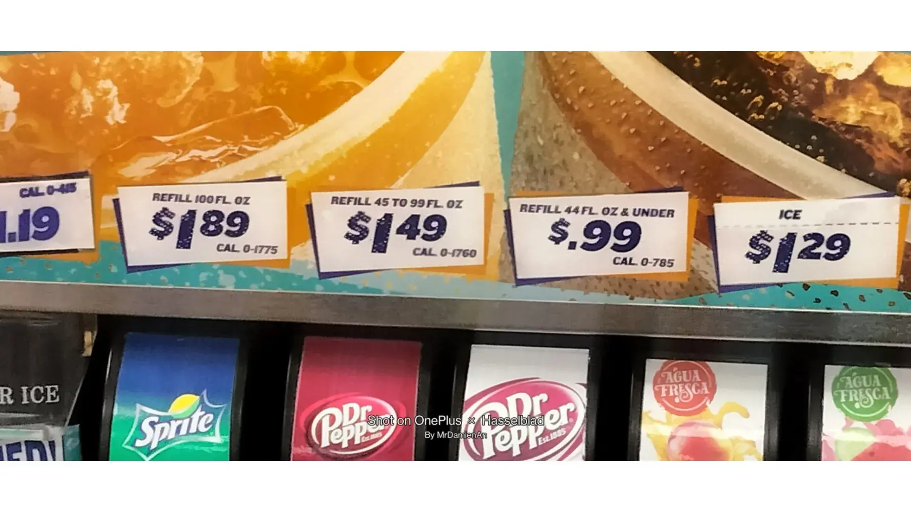On the machine itself, inside the store, another sign specified, again, large or small drinks for $2.00