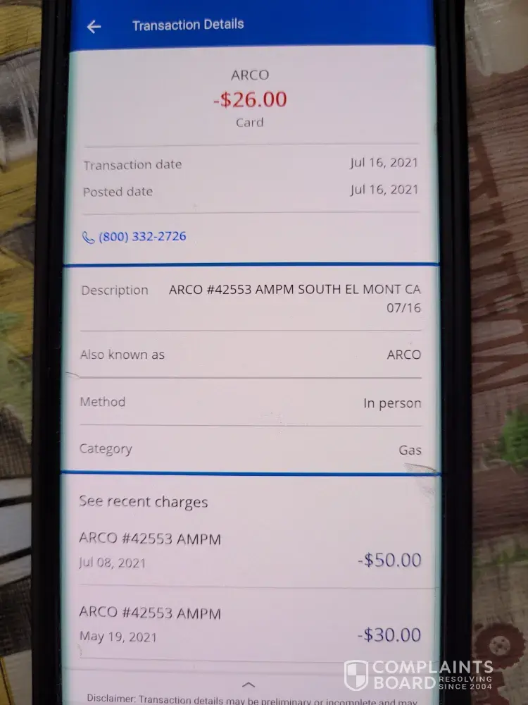 Read full complaintMoney not returned from gas not pumped