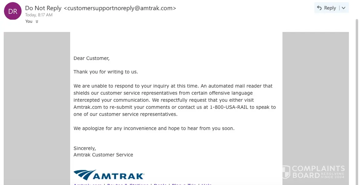 I called Amtrak, spoke with 5 people, including Customer Relations.