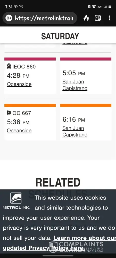 I did however receive a request to fill out COVID forms for travel at 3PM today but at no time was I informed the train was cancelled.