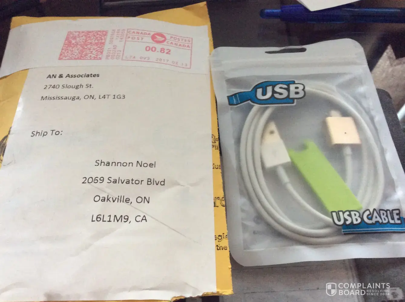 Upon receiving the package, enclosed was a generic white USB cable which can be bought at any Seven-11 store, not the magnetic cables advertised and ordered x 3. The package had a label with a return address of AN & Associates, 2740 Slough Street, Mississauga L4T 1G3.