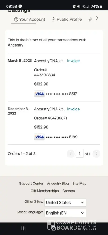 I gave all this information to Ancestry in an email survey and gave them a 1-star rating, saying I would never recommend them to a friend. The automated survey responded to the 1-star rating and asked why. I explained everything and have never heard back from them. I also sent an email through their website to customer service, but received zero response. Overall, I am extremely disappointed with Ancestry's customer service and would not recommend them to anyone.