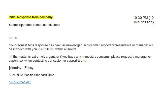 - Anchor House Financial has been found to only resolve 25% of 0 negative reviews, indicating a lack of commitment to addressing customer concerns. Many customers have experienced long wait times for responses or resolutions, unhelpful or inaccurate answers to their questions, and a lack of follow-up or updates on the status of their issues.
