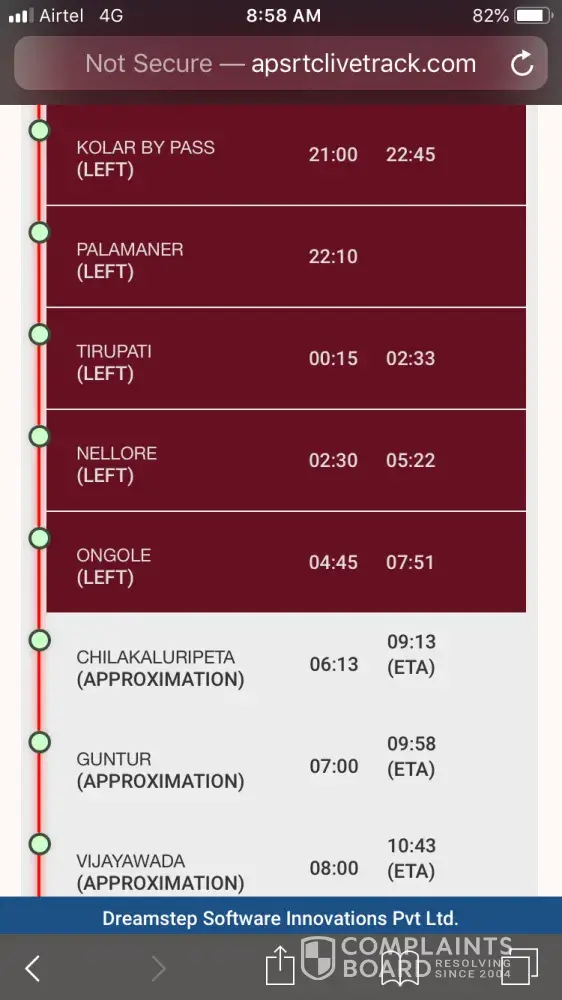We have experienced that the driver stopped at nandyal, a group of members get down from bus for toilet purpose. A few minutes later the bus gets started without checking the members . One of our colleuge didn't receive the bus who is unknown to the area.After sometime we were noticed the person was not there. We asked the driver for the remedy.driver got tempered at us and used improper language.we severely disappointed with the driver behavior who is an employee in an highly affiliated road transportation system.