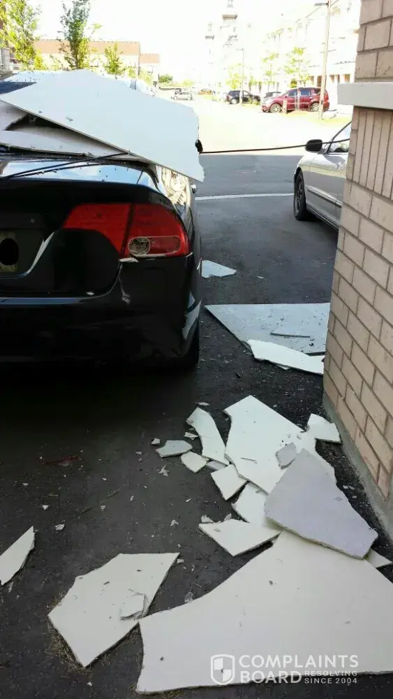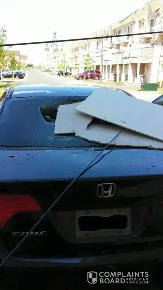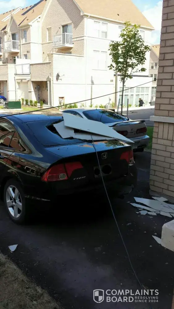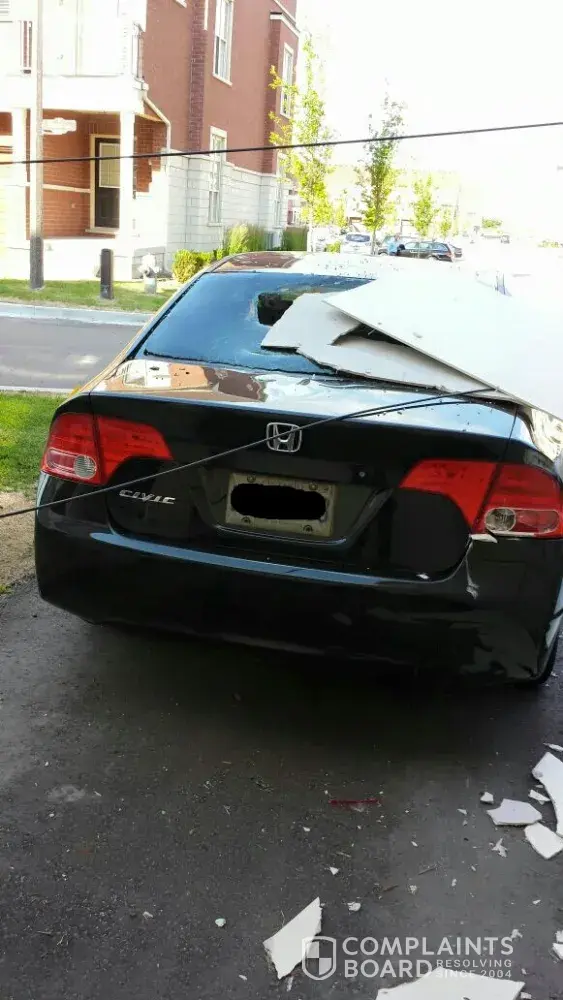 Our home is less than 2 years old and the rooftop side boards fell off onto our car like as if there was a tornado. The builders, Andrin Homes, refused to compensate for our car expenses ($1000 deductible from insurance claim) claiming it was "an act of God". To be honest, why would the thunderstorm, 3 days ago, be able to do this. There was no wind during that time. I'm sure our new home should not have been falling apart due to the wind we experienced during the thunderstorm.