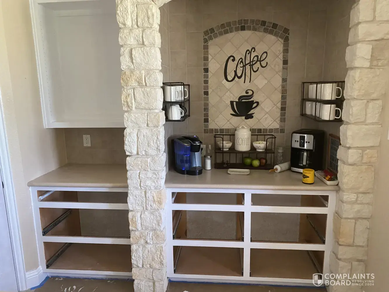Troy asked for more money to do what was already in the contract. We said no. He pulled his helper off the job. Had already been paid $6800.00 (50%). He hadn't completed a 1/4 of project. Because of the damage to kitchen/drawers/doors new contractor has to sand everything and start all over. Contractor brushed cabinets, didn't spray. Didn't completely mask off walls and trim as stated in contract. Could see the nail hole repairs through the one coat of paint. Sheriff had to be called to get our cabinet doors and drawers returned. Troy stacked them by the garage door. All of them scratch/dented. Troy Smith on his in walked off the job with $6800.00. As stated by the sheriff to do, a suit has been filed against him.