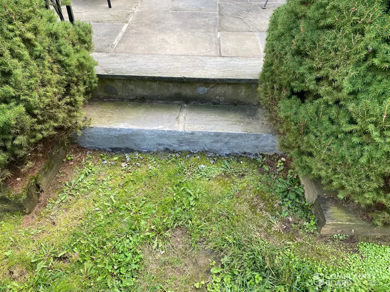 These issues are about damage of threshold of french door, about caulk at corner failure and at step area, and finish nails across fascia board at front of deck that are showing and look like chicken feet...as they filled with crayon that melt/evaporates.