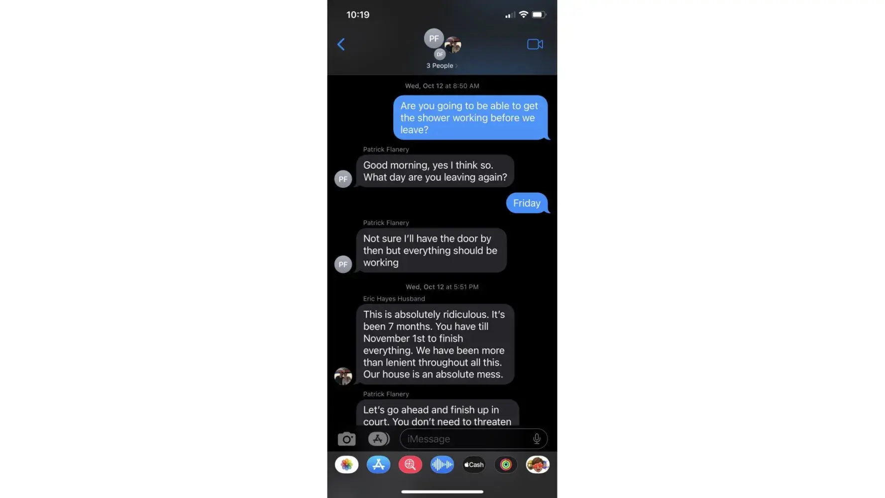 We contracted with Patrick's Handyman and Remodeling to completely remodel 2 full baths, retile 2200 square feet, redo ceiling, paint and replace interior doors. After 6 months they still were not finished and never communicated when they were coming (which was an hour or 2 a couple days a week.) We finally confronted them on it and they quit our job with a full master bath completely demo'd and "punch out" work throughout the house left to be completed. I am attaching screen shots of our text messages showing Patrick's unreasonable and inappropriate responses to our inquiry. They not only quit but left garbage and damage to our personal belongings.
