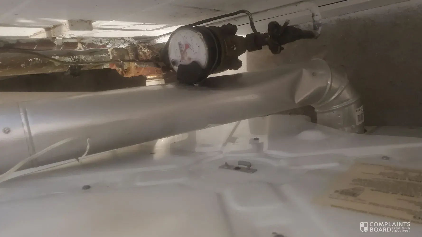 (3) After taking care of the mold behind the dryer, they shoved the dryer back against the water meter and totally bent the dryer pipe.
