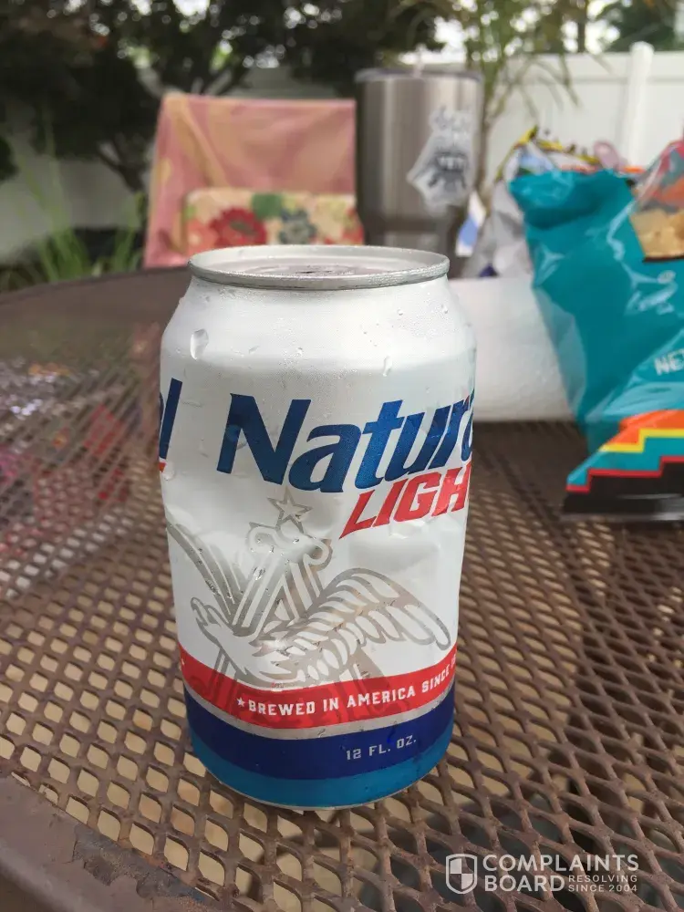 We bought a 30 pack of Natural Light on Sunday at Schnucks in st Charles. One of the cans did not seem to have 12 fluid ounces in it and could be ‘squeezed' I have attached 3 pictures to show the can...it was weird. We weren't sure if the van was safe to drink, therefore we threw it away. I have been buying Natural light for about 5 years and have never encountered this issue before. Hopefully none of the other cans .