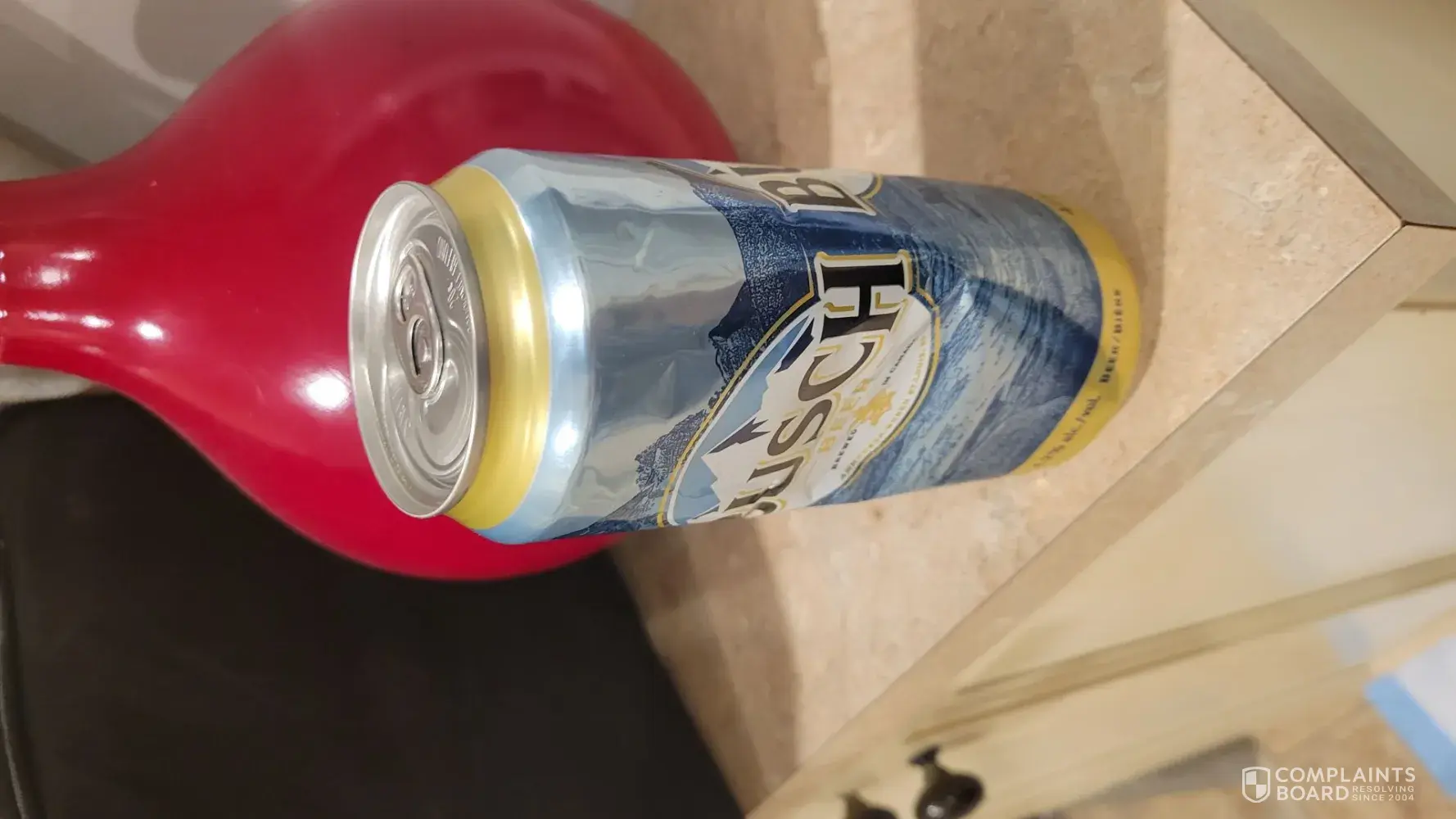 Good afternoon to who this may concern. I bought myself a case of 30 can Budweiser like I always do on a Friday afternoon after work around 2 pm on may 27th. One of the cans that I was about to put in my fridge was 3/4 empty yet still sealed shut and no holes whatsoever. So I just put it aside just in case you need proof of what has happened. Basically I’m just asking for a better quality check since this is not the first time it has happened but it is my first complaint about it. Maybe a refund could be possible for a few cans… thank you for your time.