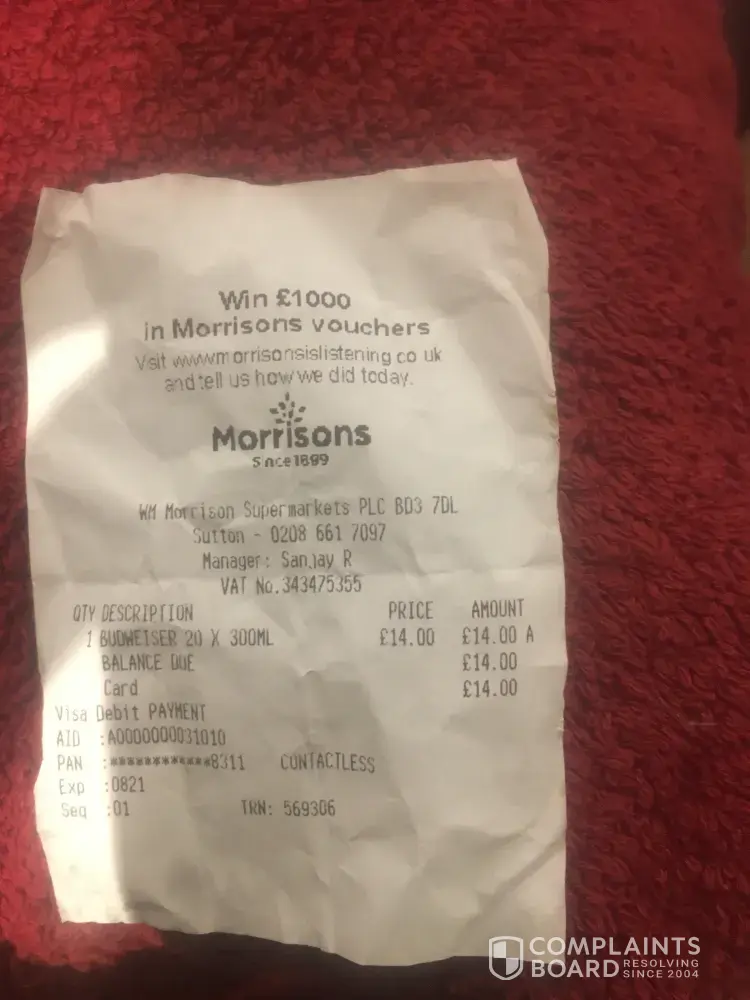 I have kept the bottle and receipt and returned to the supermarket to complain. Here I was told they can not return it as it formed part of a pack and they needed the box bar code. I offered to get the box and they wouldn't refund it anyway. The manager on duty would not come down to discuss it.