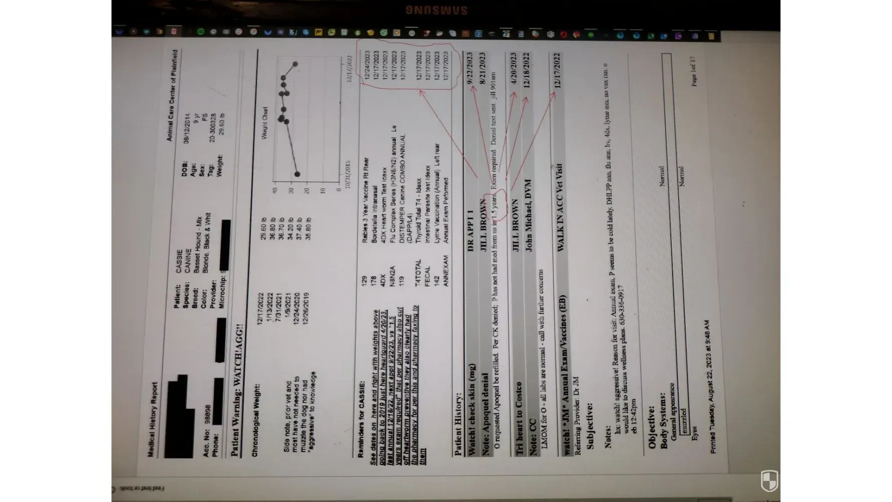 I am concerned about manhandling the animal to be 'cost efficient' given they had just hired an MBA when they did this to the practice, may have done this to the dog. The entire destruction of what they were tracks to the date of hiring an MBA, when they started triaging regular vet appts when shots expired, etc, so your animal may also develop behavioral problems from this vet as mine did that make the dog have difficulty having vet care.