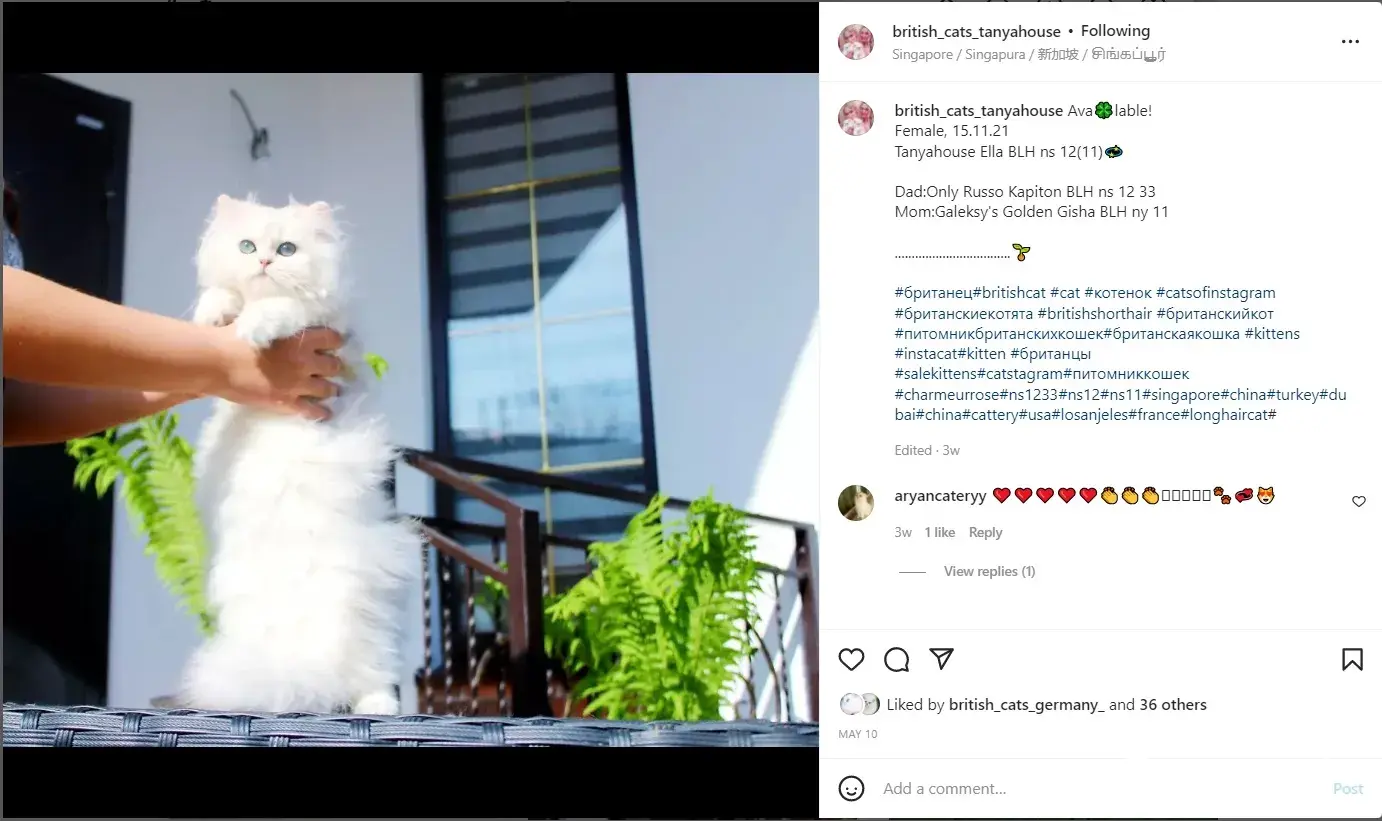 Tanyahouse breeder of British longhair cats  (ТатьÑна и Ольга ЕвÑеенко) - they have a few Instagram pages: https://www.instagram.com/british_cats_tanyahouse https://www.instagram.com/british_cattery_tanyahouse/ https://www.instagram.com/tanyahouse_cats_british/ Phone number [protected] They are selling cats displaying...