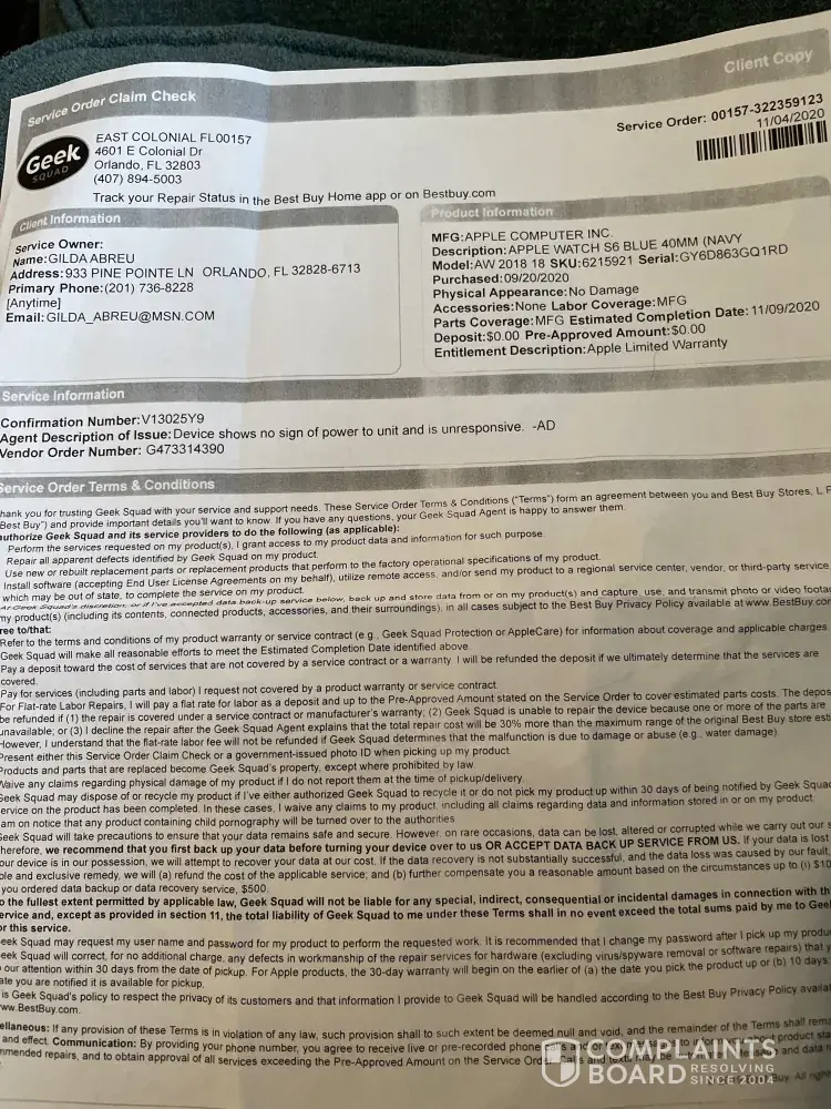 I was scheduled for a service repair at a best buy store big mistake since they have to send all watches to be repaired at apple. No replacement available at store for any watches every thing is done by apple. Why not set up schedule to your apple store directly to avoid unhappy customers. No updates from best buy was on hold for more than 30minutes, tracking repairs only shows date item was drop. Had to call apple support for an update which is that a replacement was send, now will have to wait for some to notify me that the item is at the store which could take up to 5 days. Not a happy customer
