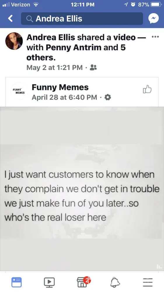The person that posted that on her facebook page is one of the worst servers i've ever come across and she talks crap about customers and isn't smart enough not to be overheard by other customers who might know the person she is trashing... She rarely runs her own orders that I have seen, she sits to take orders, and just to talk to customers period. I'm not the only one with the complaint. I have friends that refuse to be seated in her section, so this isn't me trying to lynch her. Her post is absolutely unethical and looks bad towards the company and customers. Is action not taken against employees like that?