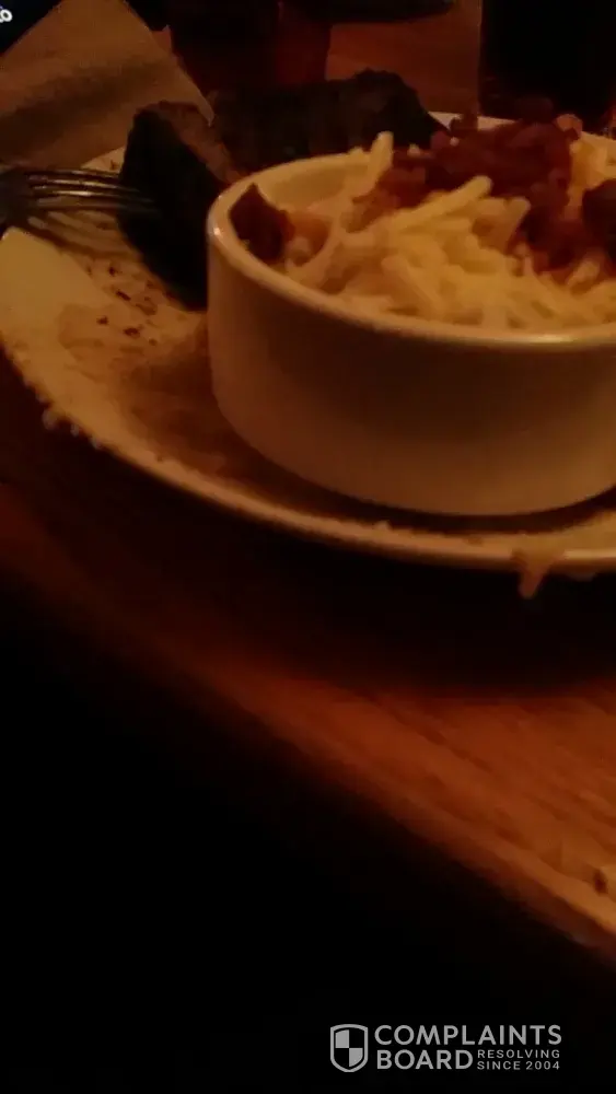 I ate in late night last night. We ordered apps and entrees. I still have my reciept. It was close to closing and our waitress was horrible. She brought unsweetened tea twice and our whole meal we had no drink and when I did get a drink she said drink machines were down and she didn't know what she could do. Our meal took forever to arrive in an empty store. While she enjoyed a coworkworkes engagedment she neglected her guests.Our sides were cold and our steaks were two four ounce steaks instead of 8 oz. When we told her our meals were cold she huffed snatched our plates they heated our plates up scooped the mashed potatoes into a bowl one loaded with cheese that was not to have it on there. off the plate and they were still cold. Our steaks were cooked throughly not the way we ordered our appetizers were sopped with grease and hard. She proceeded to sit behind us staring rushing us out of the table in my opinion she acted as if I was inconveniencing her by the kitchen staff messing up our order there was no manager in sight and I was too frustrated to speak with one. I felt very direspected. I have pictures of the dirty plate. I paid 50$ for a meal that was wrong and I was forced to eat the only thing I had to eat for the day cold and not what I paid for. I'm very disappointed and I frequent this restaurant and I have never experienced such awful service. Any questions feel free to email me.