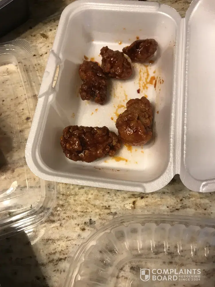 Both contained 5 of the smallest and over cooked wings I have ever had. A few of them