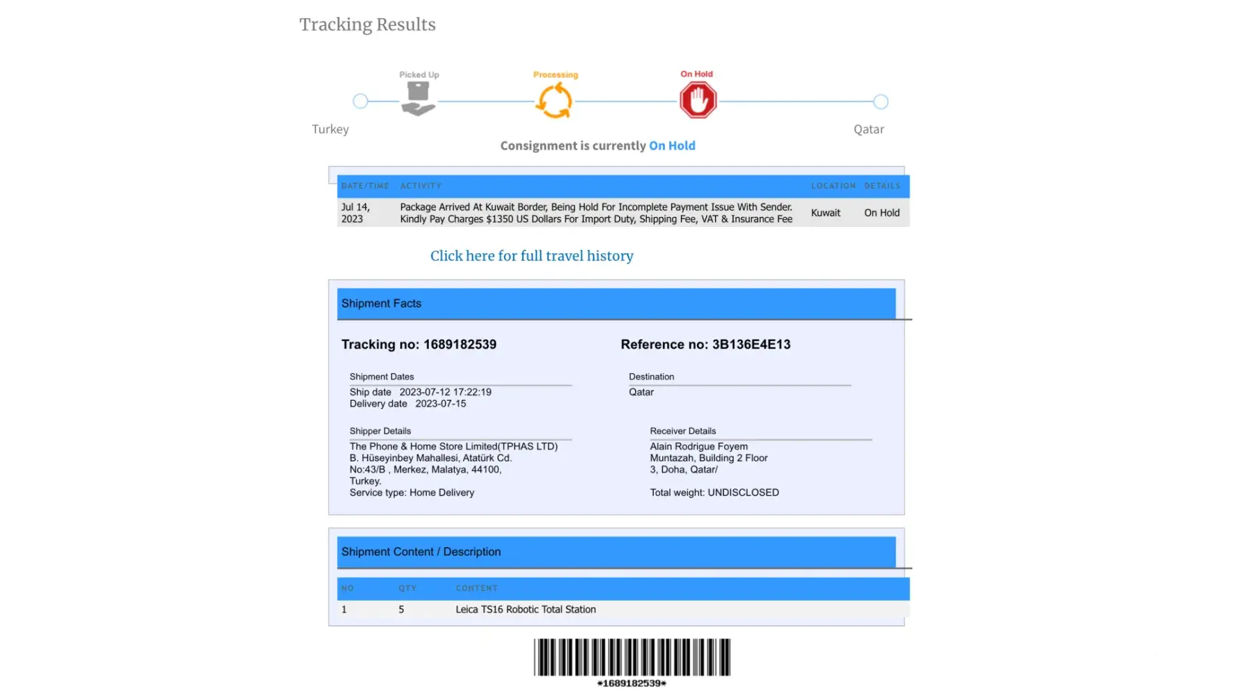 Dear Sir, My Name is ALAIN RODRIGUE FOYEM, living in Doha-Qatar. QID No: [protected] and phone number +974 [protected]. I have a complaint against this company The Phone & Home Store Limited (TPHAS LTD) located in Turkey. Managing by Mr. Ahmed Malik Fayez. Contact number: +[protected]. www.tphasltd.com. [protected]@tphasltd.com Email...