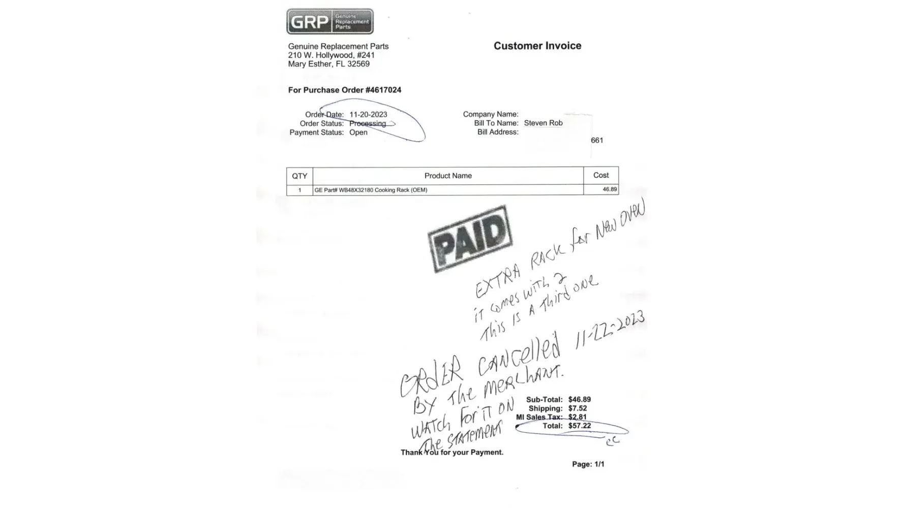 GenuineReplacementParts.com - GE oven rack order