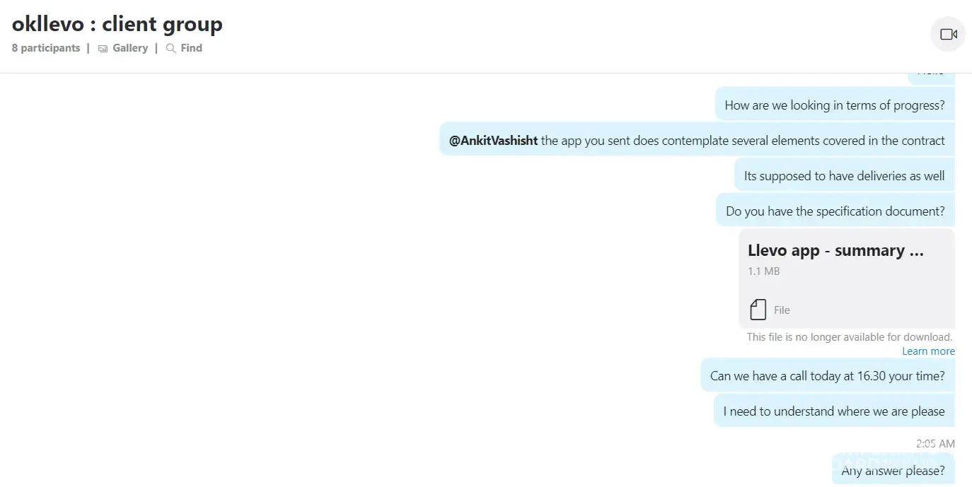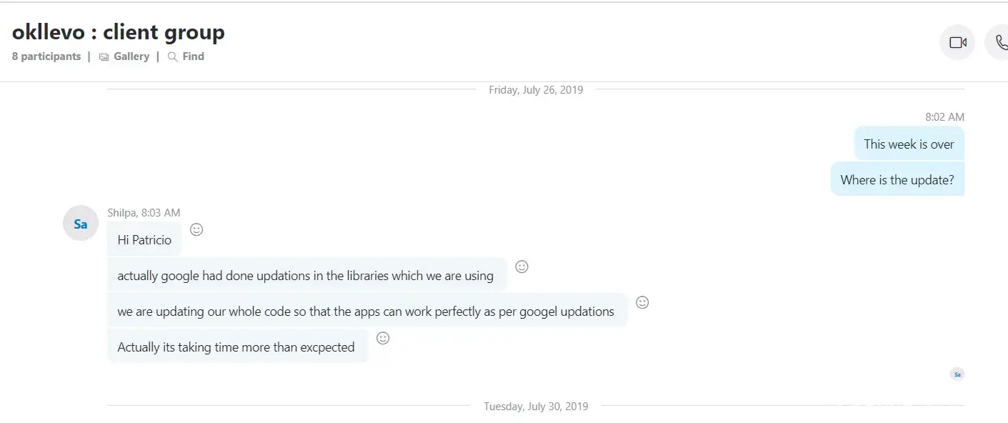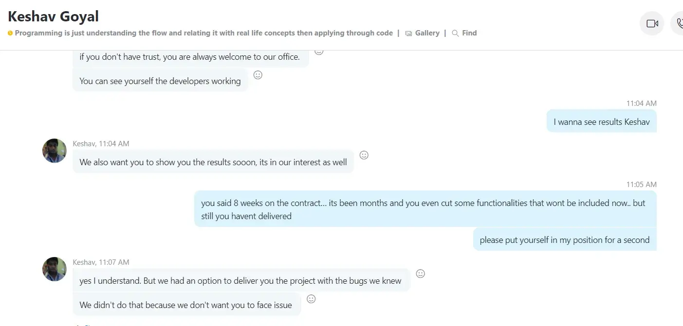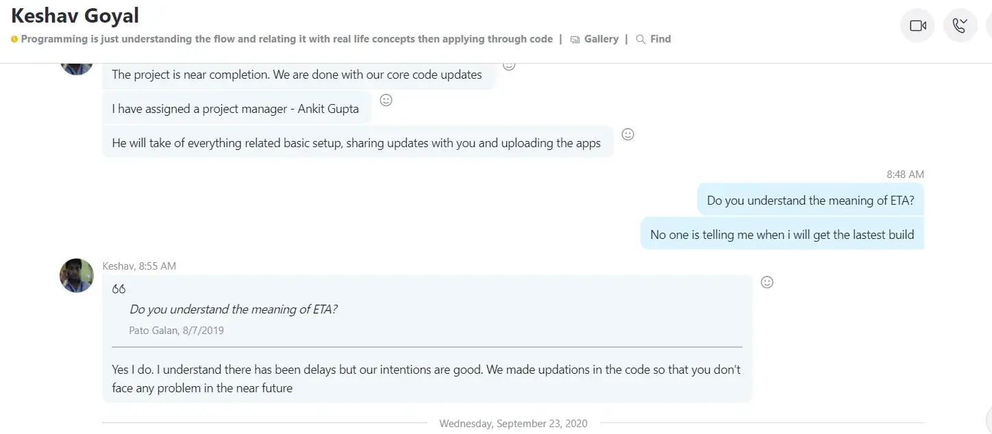 On or around 21st September 2022 we engaged this Indian company to develop an All-In-One software for our Taxi Business, Delivery(Courier), Food Delivery, and Tradesmen business. The company quoted us $4000 with a delivery period of 7 days. The company demanded payment before commencing the project and we effected a $3500 payment by 24th November 2022. To our disappointment, they started backpedaling on several deliverables, deliverables such as completing the project within 7 days as advertised on Facebook and other social platforms such as Instagram. From the time we paid the $3,500, the company has failed to deliver a working Mobile App as can be evidenced by the many follow-up emails below. In our quest to get the company to deliver a working software(Mobile App) as agreed, we have made several follow-ups via the project Skype group that was created as a way of easing communication but to our disappointment, the company has elected or chosen to ignore our messages or respond to our several emails.