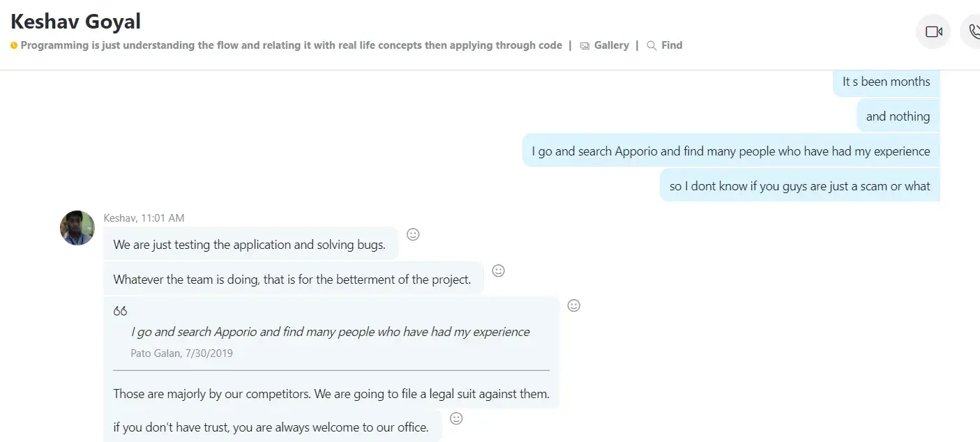 This scam strategy is to delay the delivery so much so that your business idea becomes obsolete and Apporio will get away with what you have paid them