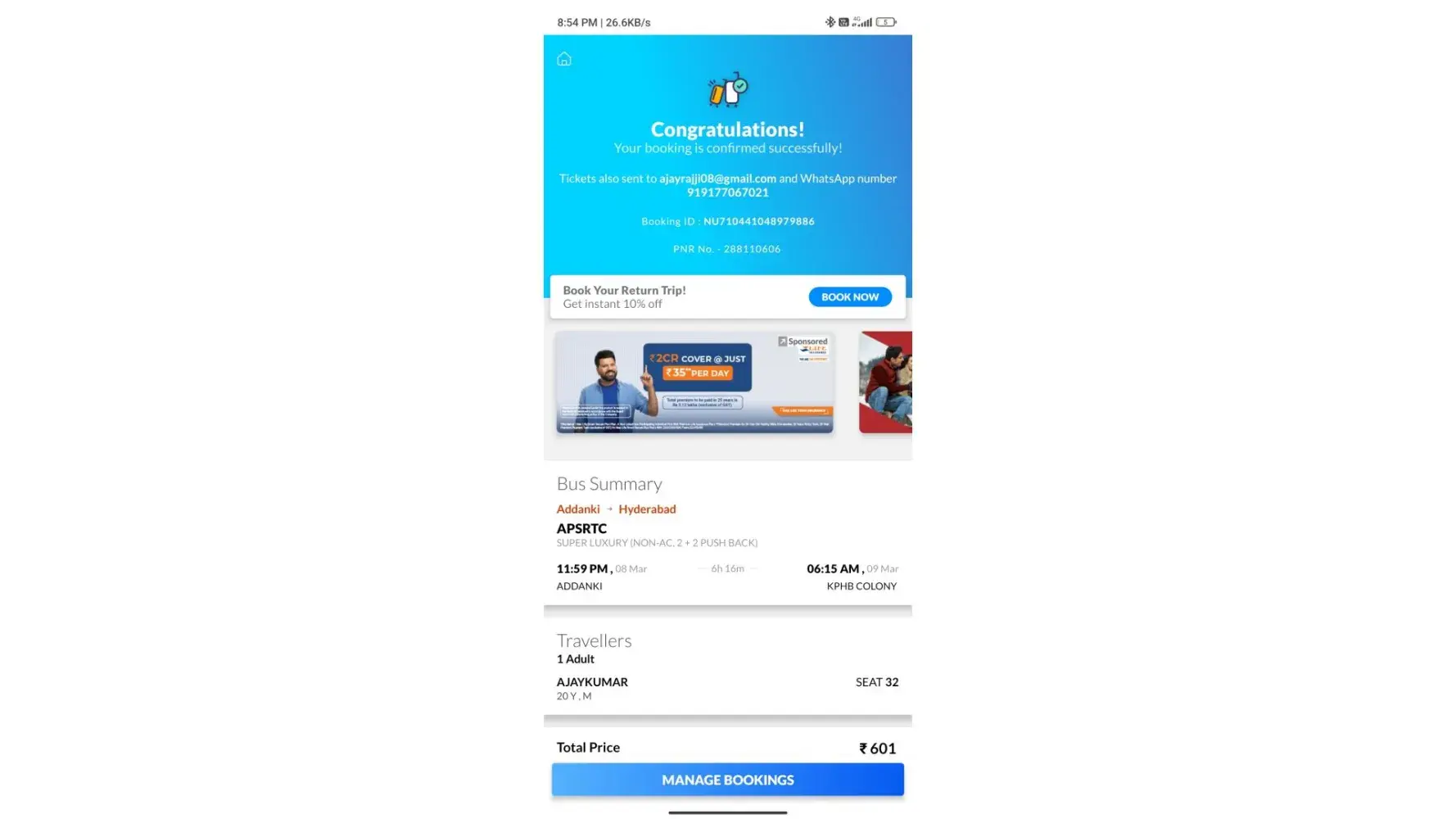 Today journey addanki to kphb (hyderabad)