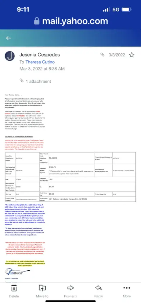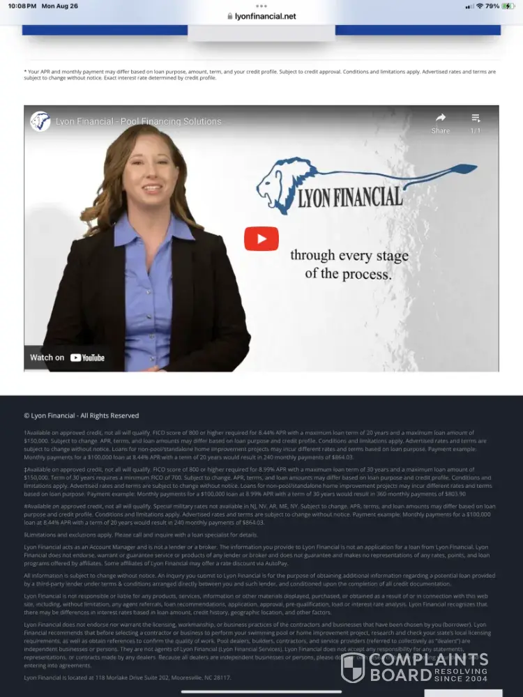 Referred to Lyon Financial by pool builder Sandcastle Pools LHC, AZ. 1/16/22 I go online and applied they offered low veterans as low as 4.9 rates. I received conditional approval email 1/18/2022. I uploaded docs and it was confirmed 1/21/2022. Which I cannot access this info on the site haven’t been since beginning. Lots of various emails showing...