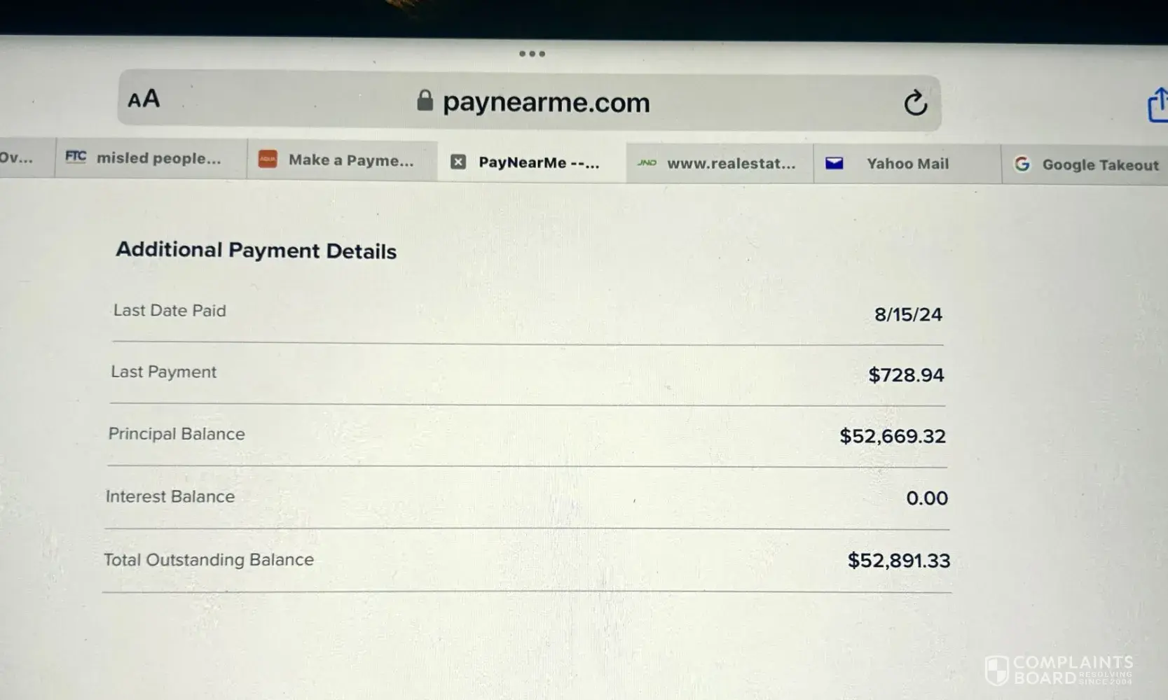 We mailed the paid off on the tub to Aqua Finance on November 3, 2022 they receive it on November 7, 2022 but did not post it until November 11, 2922. We received a statement from them showing a balance of interest due in the amount of $100.36. We still have not received a copy of the loan contract from Aqua Finance.