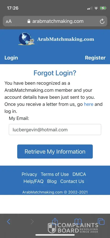 I have been sending e mails and all of them came back, I even spoke with ccbill about the credit card and they could not find my information, I send numerous e mails at support@arabematchmaking, com and without results