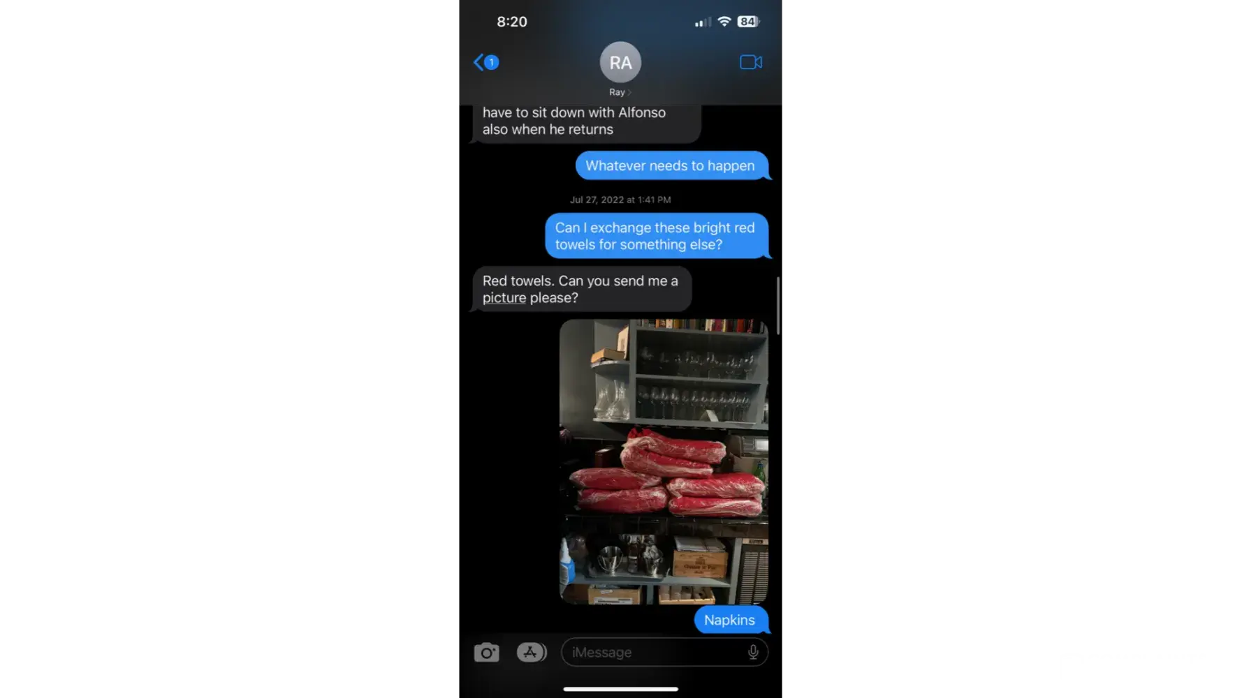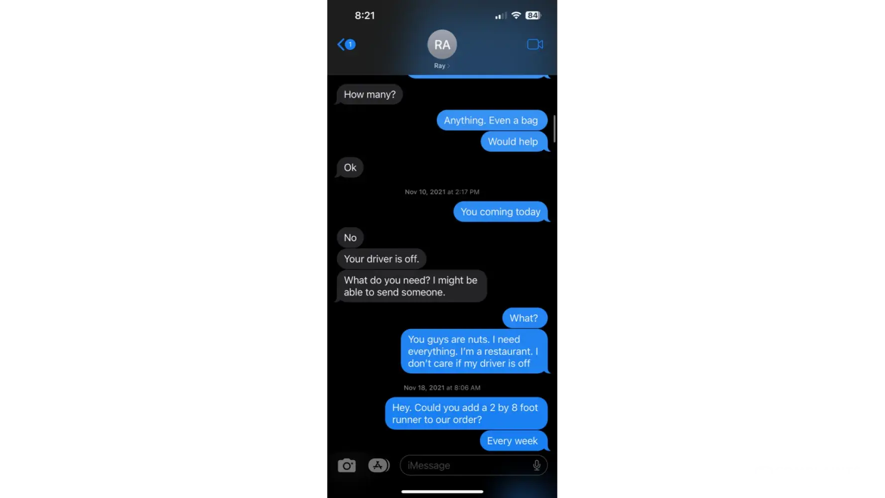 One individual specifically, David Patten, became almost threatening on a phone call. When I told him of the many problems that we had with Aramark and told him that we would not continue service with them. I told him that our contract ends on 6/1/23. and that we have already turned in our Aramark items. I explained that, while I would love if Aramark would release us from our contract early, I did not expect that to happen. I explained that the Aramark guy, Ivan who is WONDERFUL, could continue to come but that we were not continuing service. Mr. Patten tried to explain how he was different from everyone else and why we should stay. I REFUSED to maintain service with them beyond the contract end date. Mr. Patten stated that I could do what I wanted but that he would "do what [I] have to do." I asked him what he meant by that and he stated that we were in a contract. I agreed and stated that we have not broken a contract and have not threatened to break a contract.