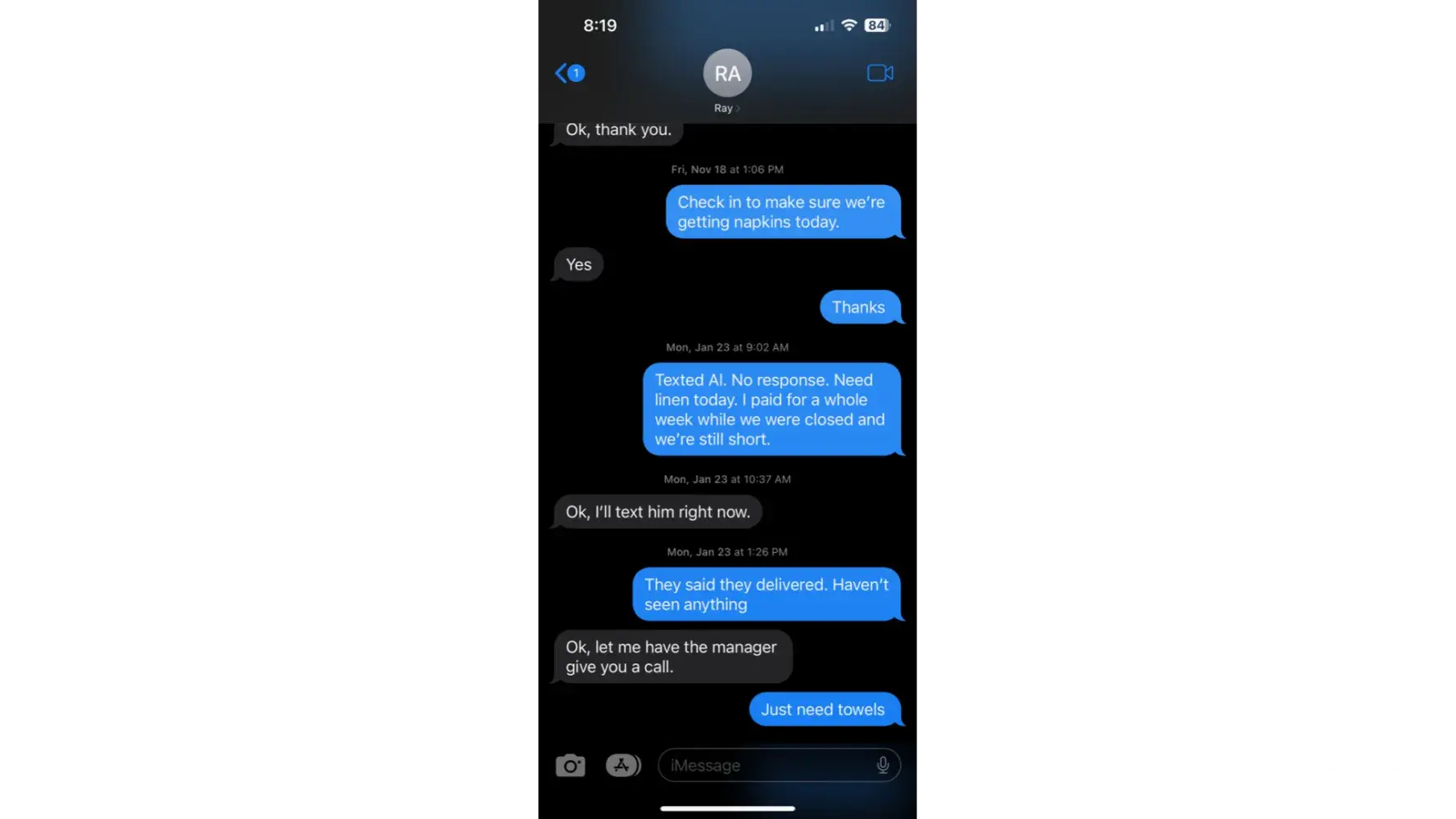After years of sub-par service, increasing our weekly invoice for no reason, never giving us enough linen, skipping our delivery entirely, not responding to complaint I had to threaten to call the cops if they came back on our property.