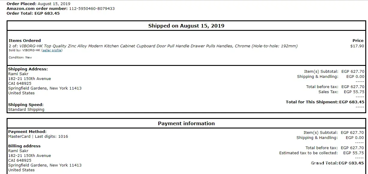 I have ordered 4 Kitchen handles from Amazon to My Shop & Ship USA NY Address. When the shipment reflected in My account it was under category Industrial/Specific Equipment ! How this could be . Called the Call Center with no clue