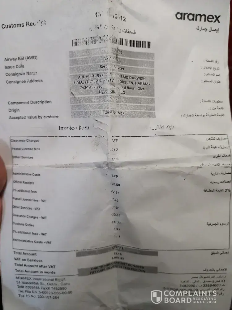 ARAMEX egypt New Cairo Branch lost my shipment which was a confidential letter