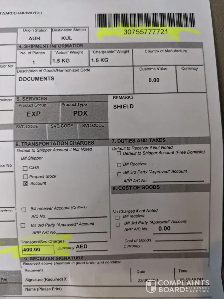 KINDLY TAKE ACTION TOWARDS THIS COMPLAINT AND CLEAR SHIPMENT ASAP, AS MY DOCUMENTS IS VERY URGENT TO SEND TO THE OFFICE WITHIN 7 DAYS