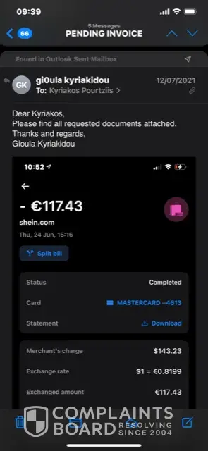 I am attaching screenshots of the email i sent to Kyriakos proutziis on the 12th and screen shot of the date since when my parcel is in Cyprus but not yet delivered.