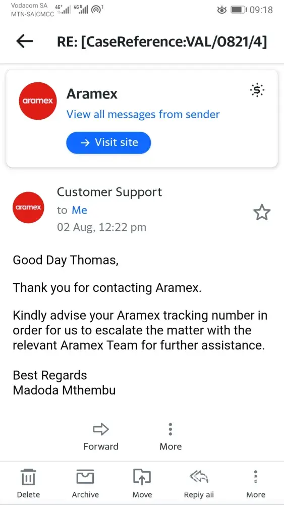 Dear Aramex team,