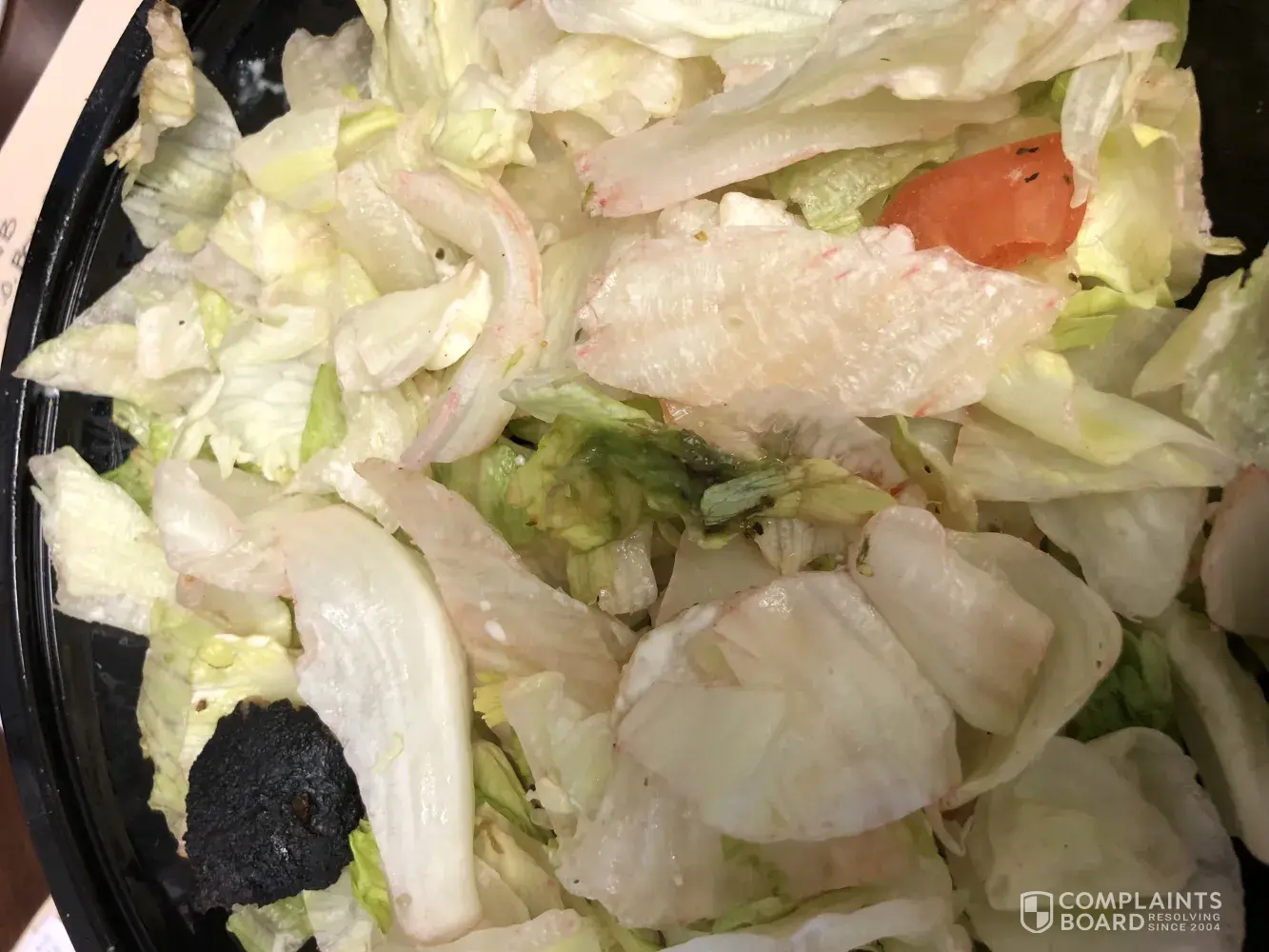 Sooooo... today, I decided to go back to a different Arbys restaurant, BUT decided instead, to go inside to place my order, AND double-check my order BEFORE leaving. Looking at the delicious-looking photo of the Greek Gyros Salad, I decided on that. The counter attendant was courteous and friendly, and my order came out in a reasonable amount of time. I checked and the correct salad and salad dressing were, in fact, in the bag! yay! I returned to my office and realized that when I opened the salad, it did NOT look at all like the advertising photo. There was very little gyro meat - (unlike the gyro sandwiches that I usually get) some was even burnt, no onions, a few tomatoes pieces - but the worst part was the brown, lettuce "ends". I was able to eat about half, before it just became totally un-appetizing. I've included a photo of the remains.