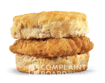5/9/2011 7:47:54 a.m. I stopped in this Loves truck-stop and fueled, it had an Arby's so I decided to grab something to go, so looking at their menu board I noticed the chicken and bisquit sandwich, and by the picture looked delicious. So I ordered two sandwiches. Left the truckstop, got on the highway opened up a sandwich and what a big disappointment. Nothing at all like the pictures advertising this sandwich. The so called chicken was I doubt 1/16th of an inch thick, a lot more breading than chicken. Also looked nothing at all like the chicken strip in the picture. Buyers beware, you will do better just to buy a bisquit, it will be a lot cheaper and you won't be disappointed by Arby's false advertisements.