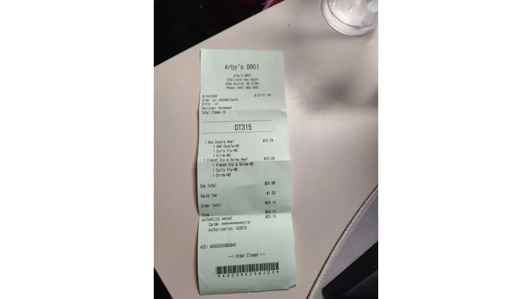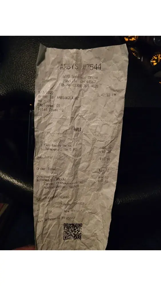On September 17, 2022 at approximately 9:30PM at the Arbys restaurant in Silver City New Mexico I ordered a chicken bacon swiss sandwhich and a medium diet coke. I used the drive through/up lane for vehicles.