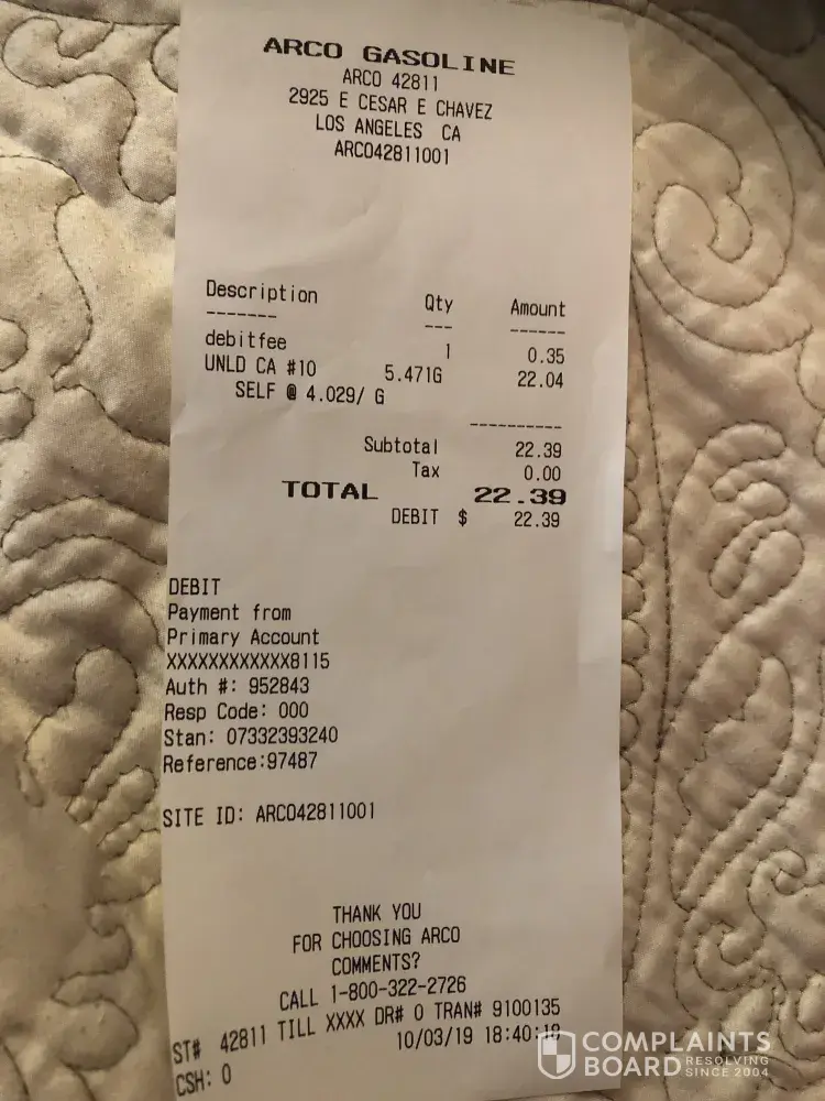use of a debit bank card at arco station 63425