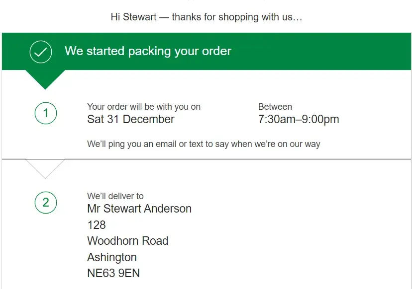 Delivery Address = 128, Woodhorn Road, ASHINGTON, NE63 9EN The goods were supposed to be delivered on the 31st of December 2022. We are now on the 3rd of January 2023, I have contacted YODEL, and they cannot find the goods, please refund me my money.