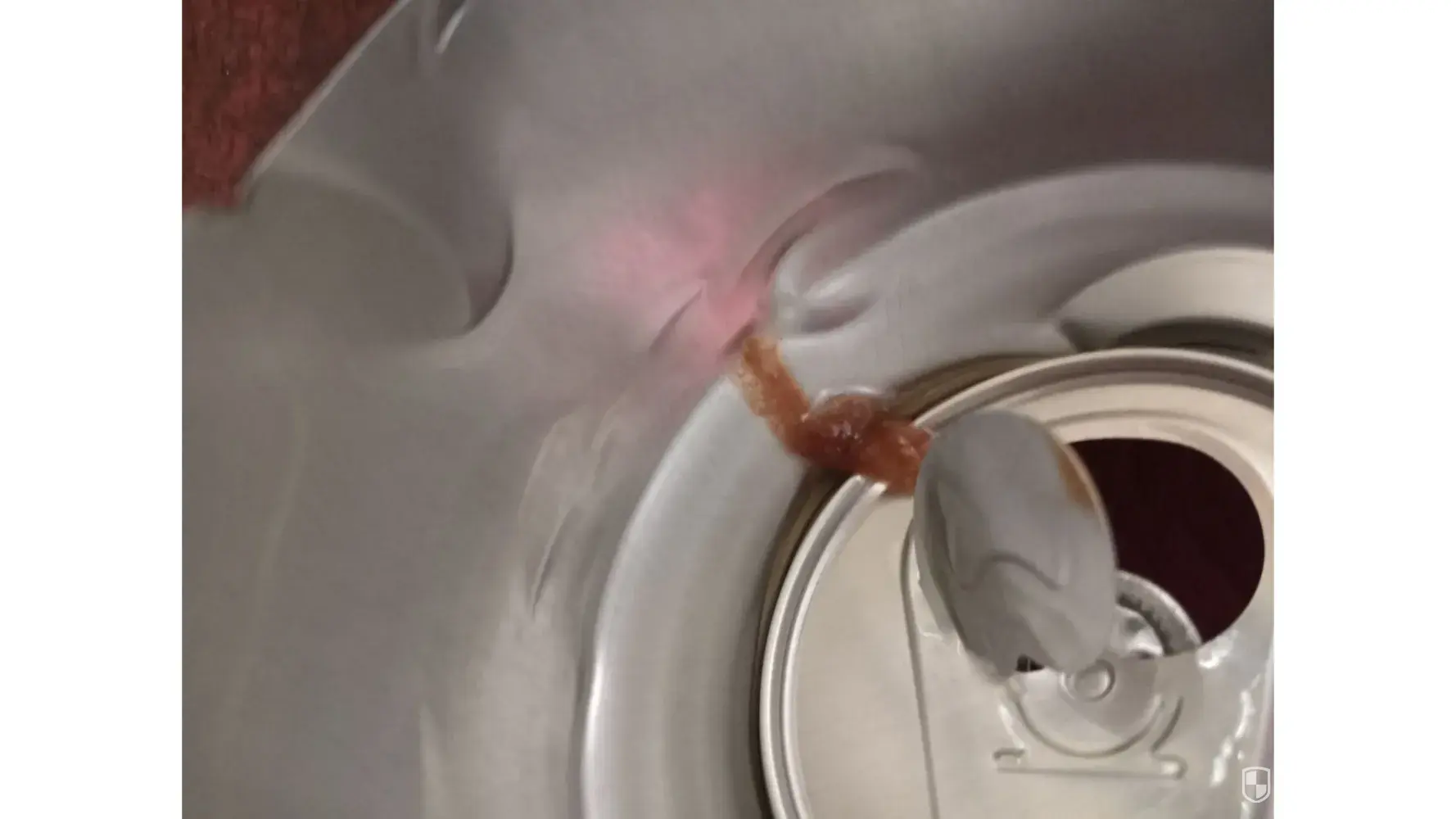 February 25th, 2022 at 8:55am I opened a can to drink and when I got to the bottom this brown slime fell into my mouth so I opened 4 more cans and they all have brown slime in them. I don't know what it is or if it's going to make me sick but it definitely made me throw up. I have provides a picture of the brown slime. I also have a video if needed.