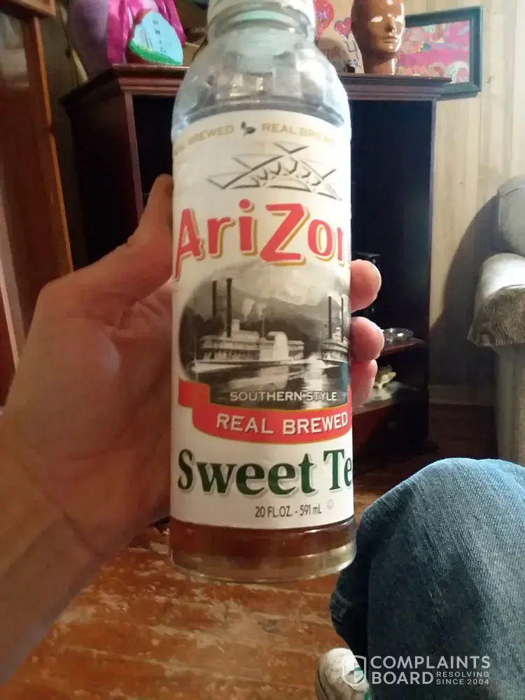 Purchased Arizona Ice Tea from Walmart, My husband drank some and replied it was something other than tea inside and there was a slimy substance floating inside. The next day my husband was ill with stomach ache and diarrhea. We took it back to Walmart and wasnt even given a refund after we showed them what we found.