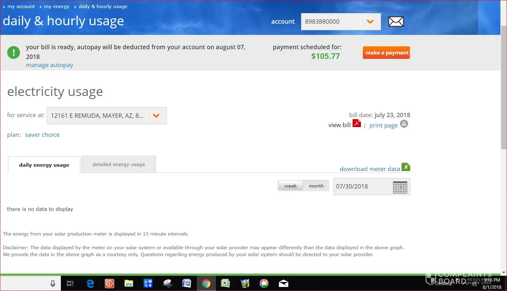 I am not provided my hourly usage in the past, or even now, there is no way for me to verify my bill without this info. I live in Chicago and the electric company here has an app for monitoring your daily usage… no such option with APS.