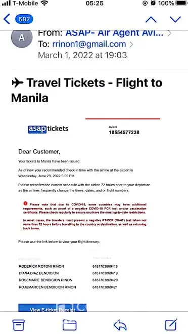 On 3/16/22, I called him and stated that we are retired on fixed income, looking for good deals with some travel comfort. After several offers, I told the offer for mixed economy is acceptable because the longer trip both ways will be on premium economy. Later he emailed me an Authorization Form-Flight to Manila-USD 3,348.00 (attached) and also suggested to include item 7-Travel Care Service for $339.90. I ask if he can send the details and his said “ can view the details by clicking the link below or by logging in to Customer Support using my last name and confirm. no. after authorizing the payment over the phone and ipad. As instructed trying to click the bottom link or logging in did not work.