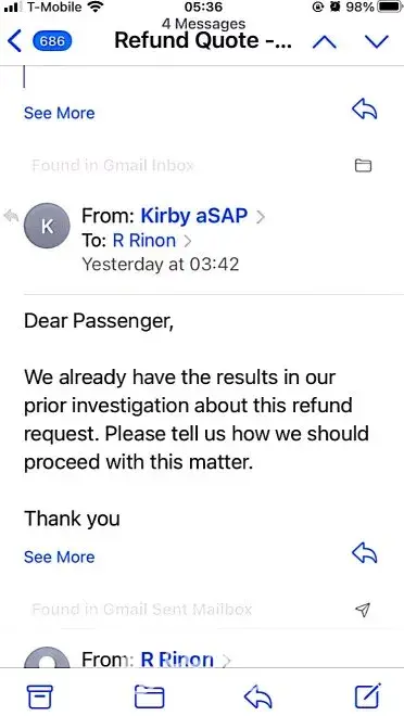 3/23/22 342am- Kirby emailed, said already have the result of investigation and they still want me to pay.