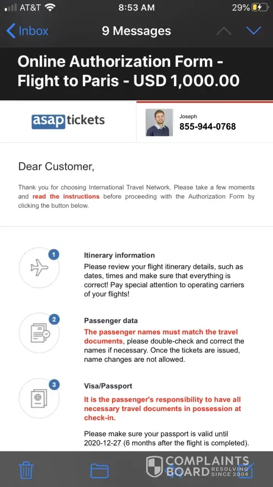 Beware! Do not use this fraudulent company! Most of their agents are professional scammers and thieves. Do not use the following asaptickets agents: joseph s. [protected]) and harrison v. [protected]).