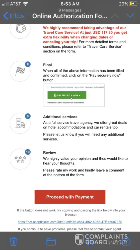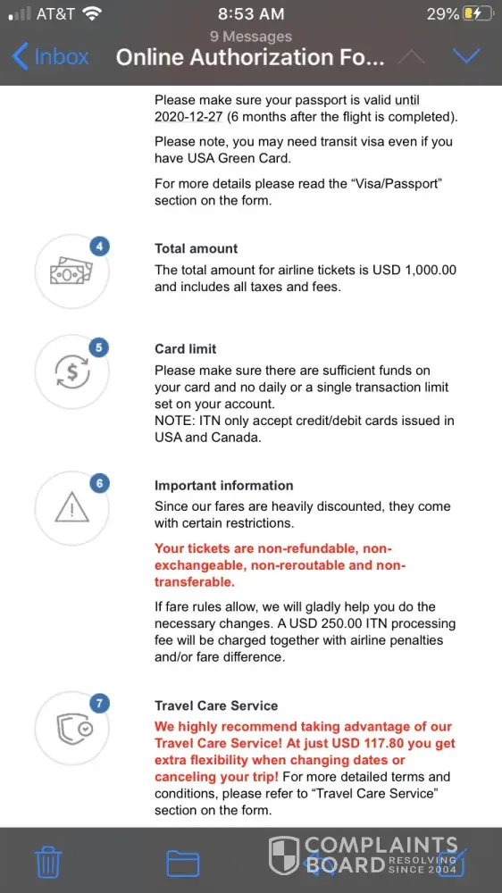 Below is the communication thread with the travel agent:Â